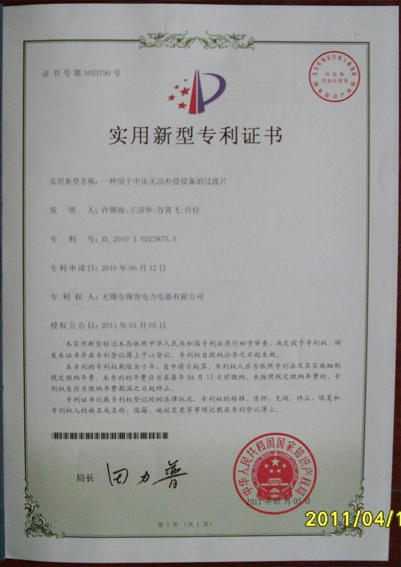 Utility model patent certificate release time:2020-07-20 04:22:41source:Wuxi Xirong Electric Appliance Co., Ltd.Click:1542