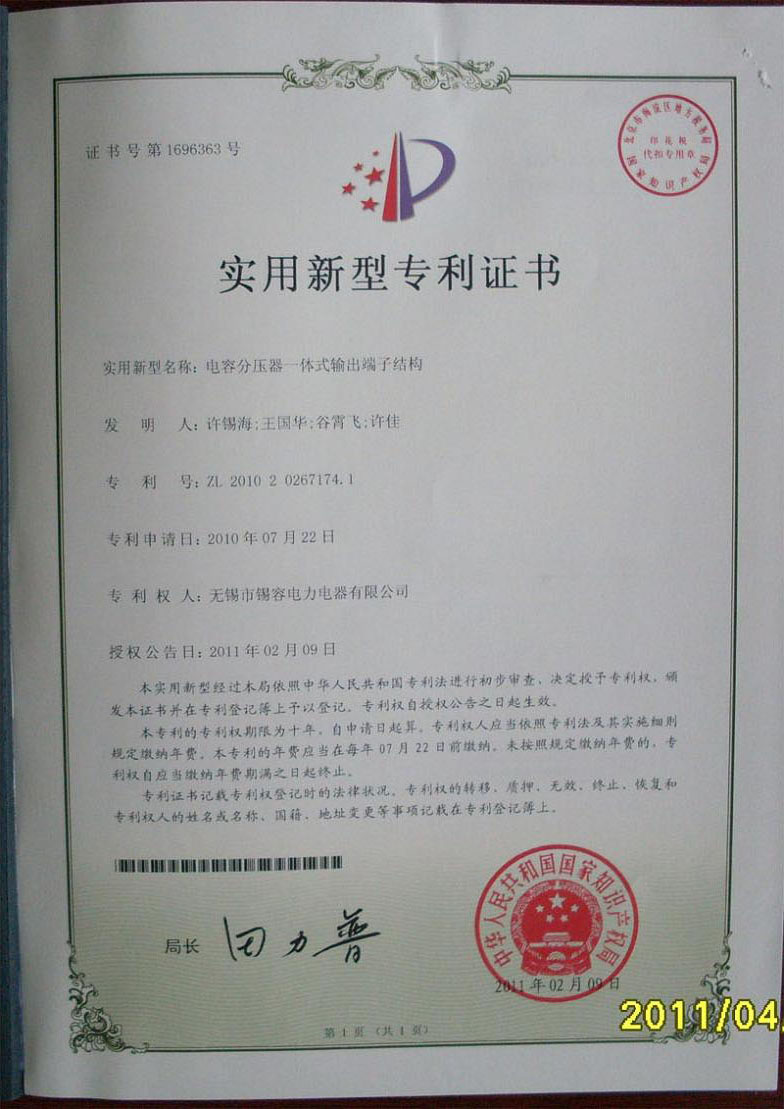 Utility model patent certificate release time:2020-07-20 04:23:06source:Wuxi Xirong Electric Appliance Co., Ltd.Click:1358