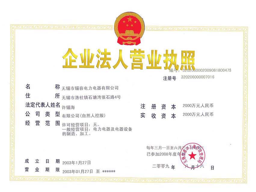 Business license release time:2020-07-20 04:35:57source:Wuxi Xirong Electric Appliance Co., Ltd.Click:1603